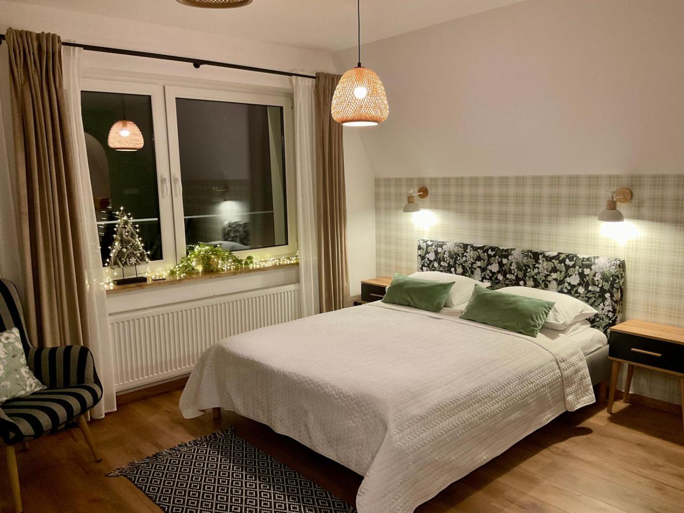 Dom z 2 sypialniami. This holiday homes special feature is the fireplace. Featuring a private entrance, this holiday home also comprises 1 living room, 2 separate bedrooms and 2 bathrooms with a shower. Guests will find a stovetop, a refrigerator, a dishwasher and kitchenware in the fully equipped kitchen. The holiday home also provides guests with a barbecue. Boasting a terrace with garden views, this holiday home also provides a washing machine and a flat-screen TV. The unit offers 3 beds. Dom wakacyjny - 6 osobowy. Powierzchnia pokoju ok.: 82 mkw.