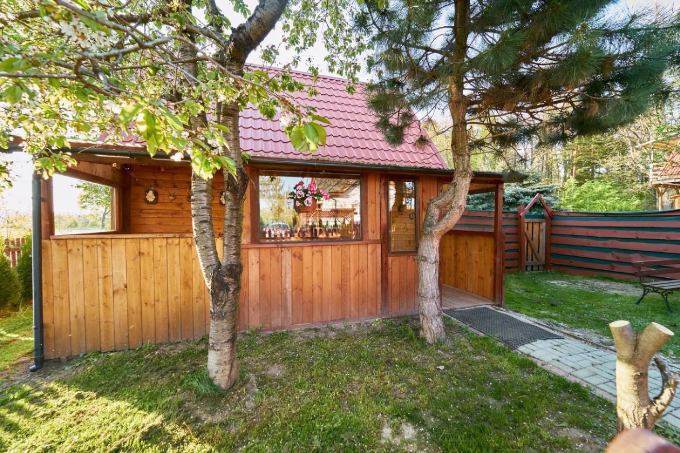Domek z 1 sypialnią. The chalet offers heating, as well as a shared bathroom boasting a shower. Guests will find a stovetop, a refrigerator, kitchenware and an electric kettle in the kitchenette. The chalet also comes with a barbecue. The chalet features a TV, a wardrobe, a sofa, parquet floors as well as garden views. The unit has 3 beds. Domek - 4 osobowy. Powierzchnia pokoju ok.: 40 mkw.