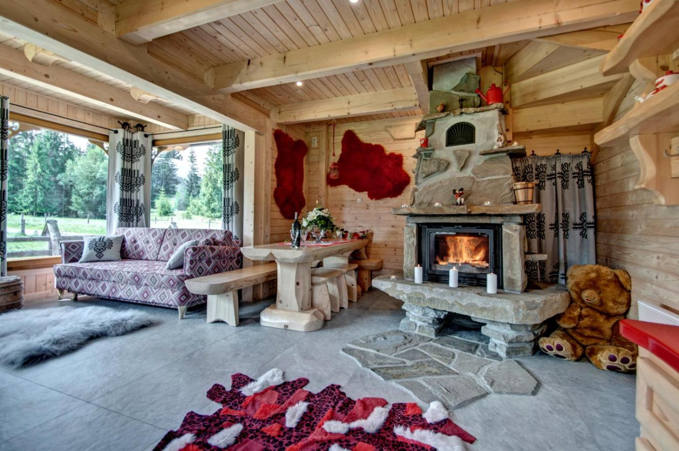Domek z 1 sypialnią. The fireplace is the standout feature of this chalet. Boasting a private entrance, this chalet features 1 living room, 1 separate bedroom and 1 bathroom with a walk-in shower and a hairdryer. Guests will find a stovetop, a refrigerator, a dishwasher and kitchenware in the kitchen. The chalet also comes with a barbecue. Featuring a balcony with garden views, this chalet also features a tea and coffee maker and a flat-screen TV. The unit has 4 beds. Domek - 6 osobowy. Powierzchnia pokoju ok.: 65 mkw.