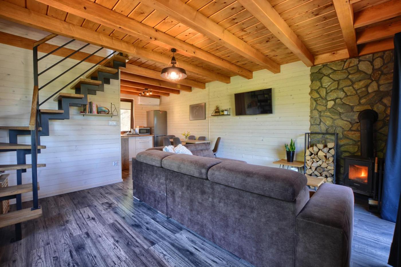 Oferta domku obejmuje kilka sypialni (2), salon, aneks kuchenny z pełnym wyposażeniem, w tym lodówką i ekspresem do kawy, a także łazienkę (1) z prysznicem oraz suszarką do włosów. W domku zapewniono ręczniki i pościel.